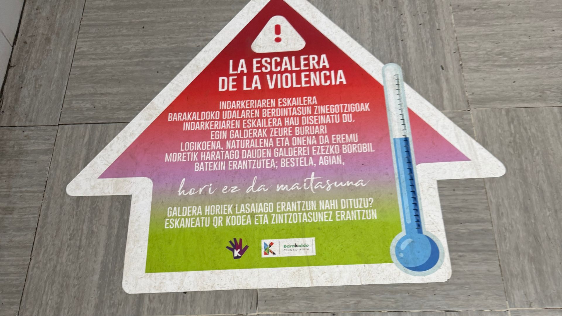 La concejalía de igualdad del ayuntamiento de Barakaldo ha diseñado esta escalera de violencia. Hazte preguntas, lo lógico, lo natural y lo mejor es responder con un no rotundo a preguntas que están más allá del ámbito morado; si no, quizá eso no sea amor.