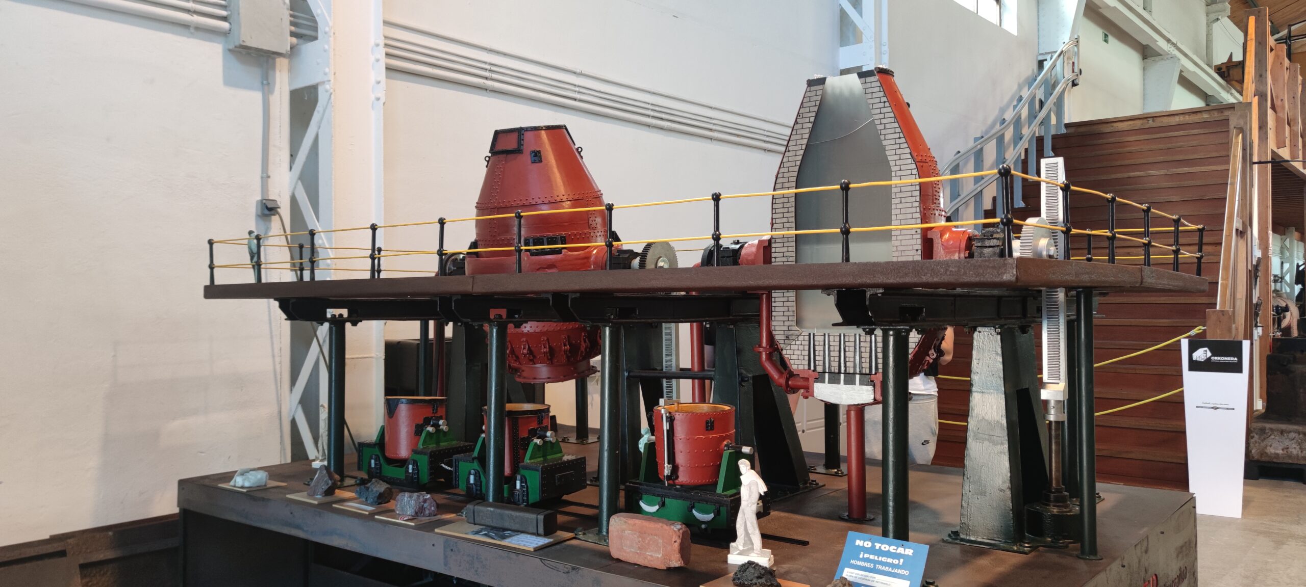 La colección que se custodia en Orconera es muy variada, como le corresponde a la diversidad de actividad industrial de nuestro país. Podemos encontrarnos desde los primeros desarrollos de maquinaria agrícola, hasta pesados elementos de nuestra siderurgia, pasando por todos los sectores imaginables. Igualmente, la representación territorial de los tres territorios es acorde a sus formas de industrialización. Ajuria, Altos Hornos de Vizcaya, Papeleras… prácticamente toda empresa que ha sido algo en nuestro pasado industrial tiene representación pequeña o grande en el depósito.